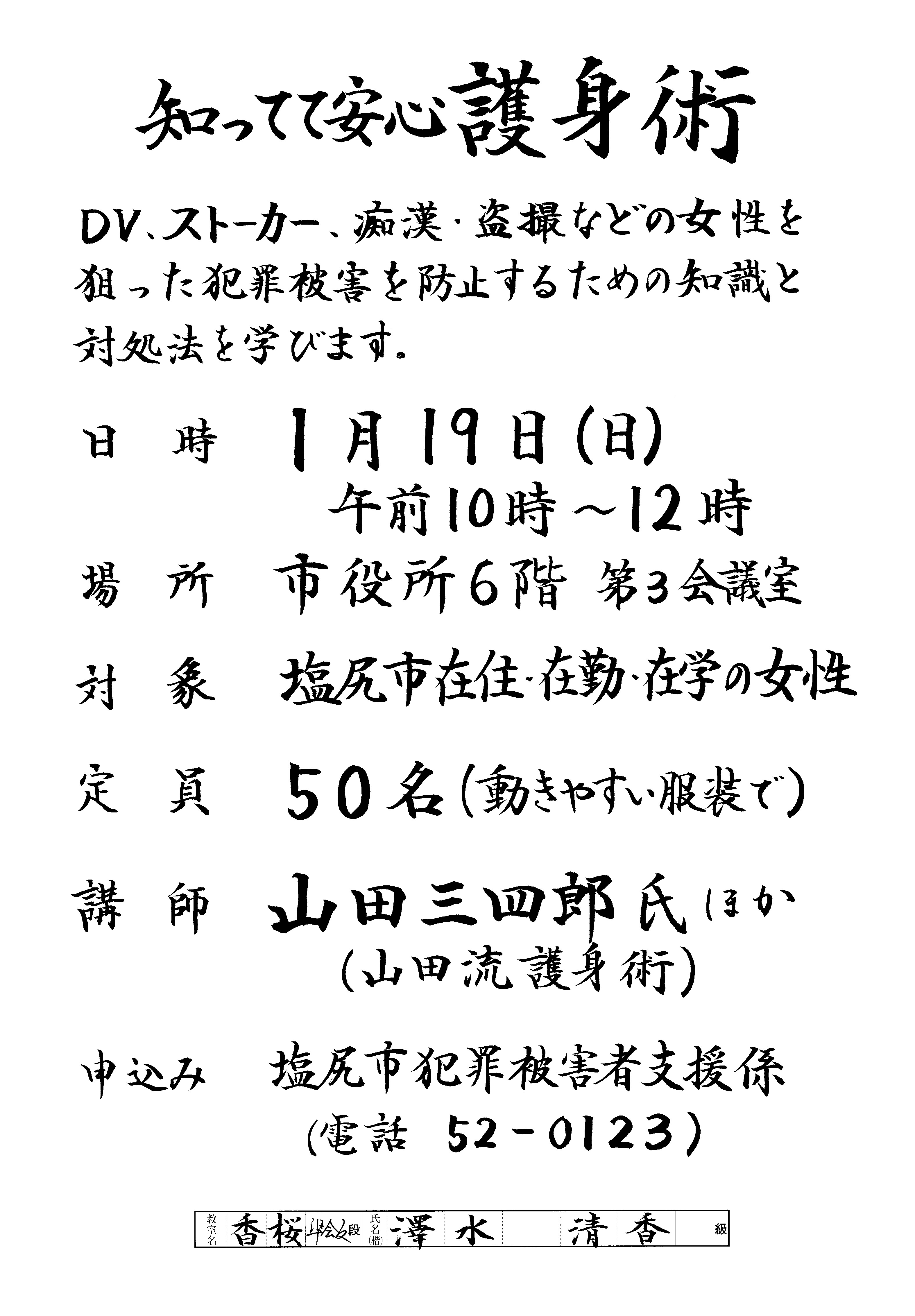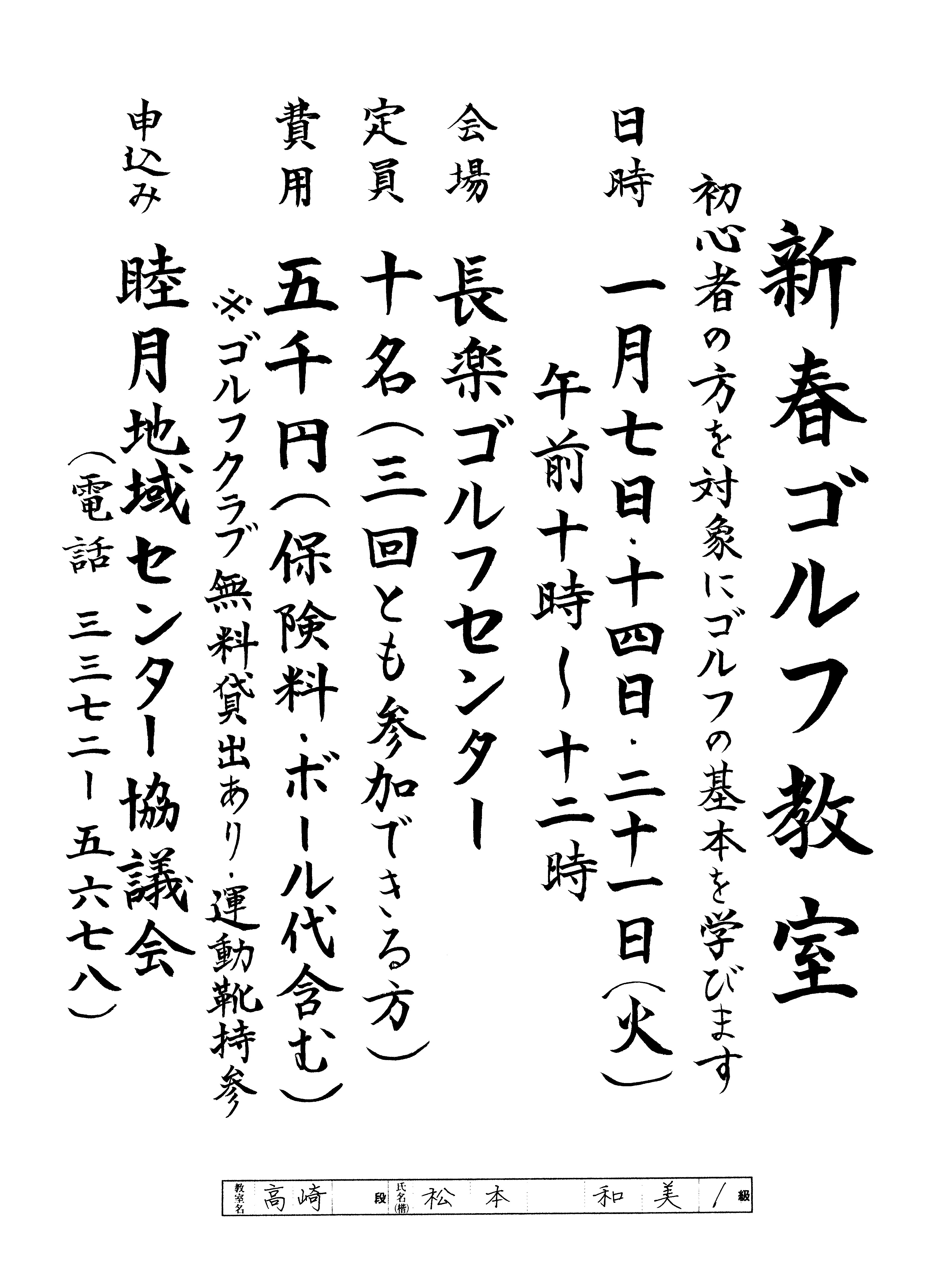 | 高崎 | 松本 和美 | 気負い過ぎず、伸びやかな文字が書けている。安定感のある素晴らしい掲示文。 |