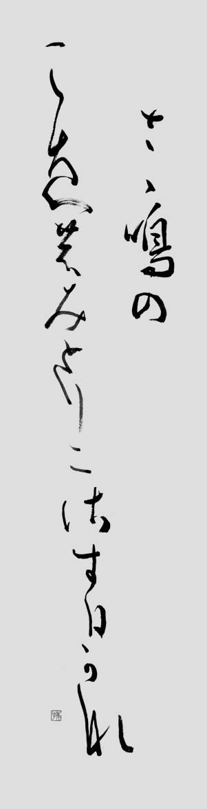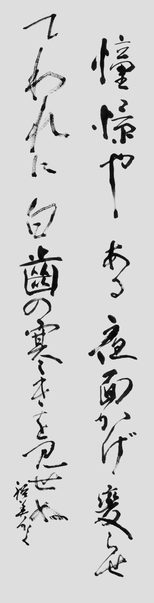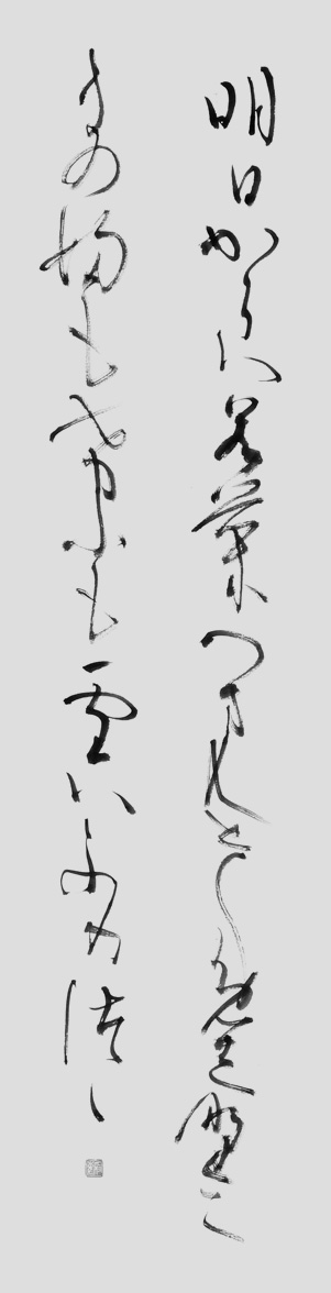 | 観門 | 藤井 蘇雪 | 墨量少なく最大の表現効果を示した傑作。 「か」 の姿は、 その筆脈を追って知る事が出来よう。 起筆は隠れて劃は點と化し分間餘白は息づきて妙。 | |