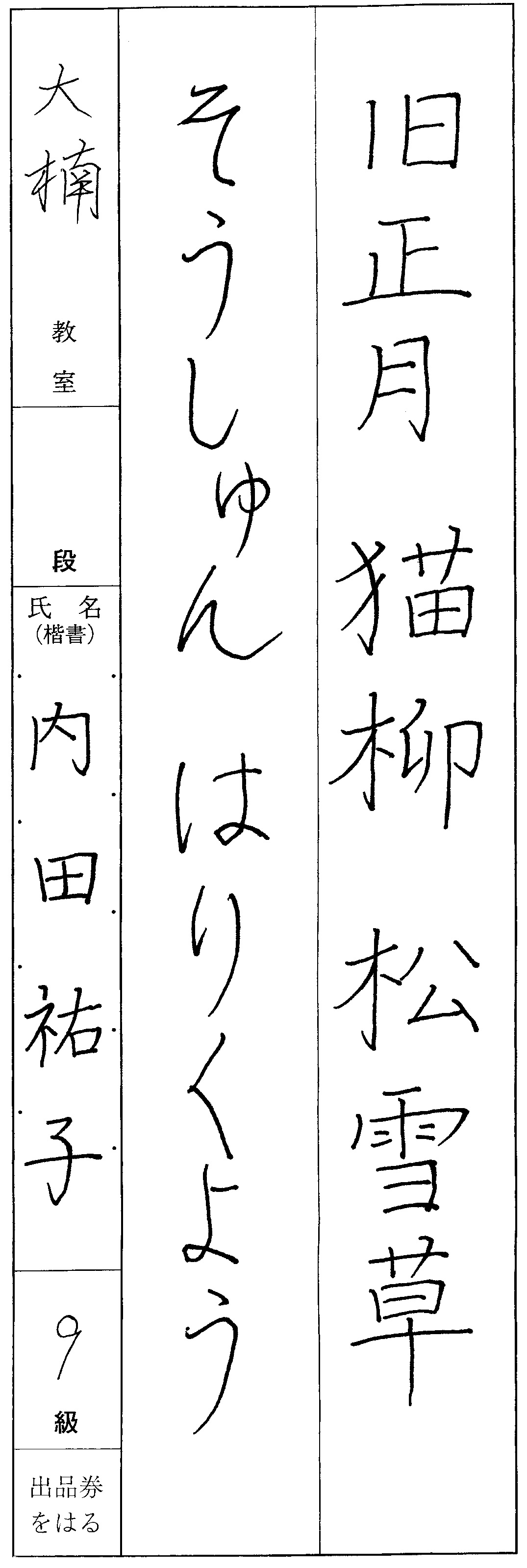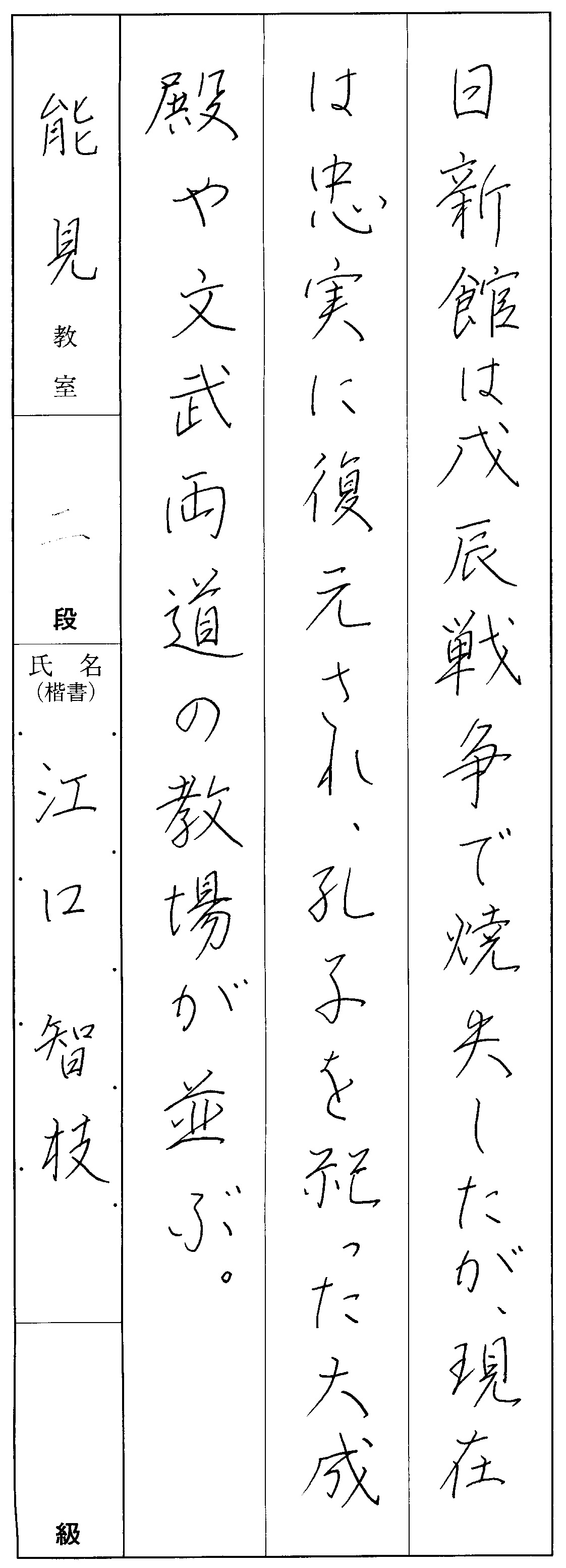 | 書学 | 坂本 直子 | 清炎 | 竹内 紗希 | 千葉 | 繁田 ひかり | |||