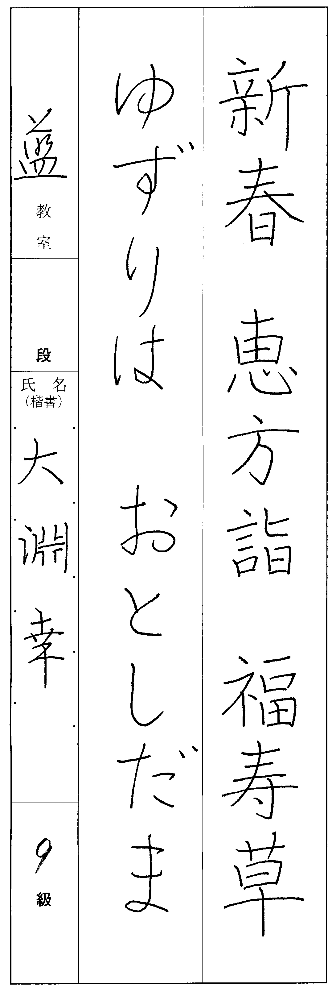 | 書学 | 久間 砂登美 | JR | 渋谷 雅子 | 風倫 | 吉田 聡美 | |||