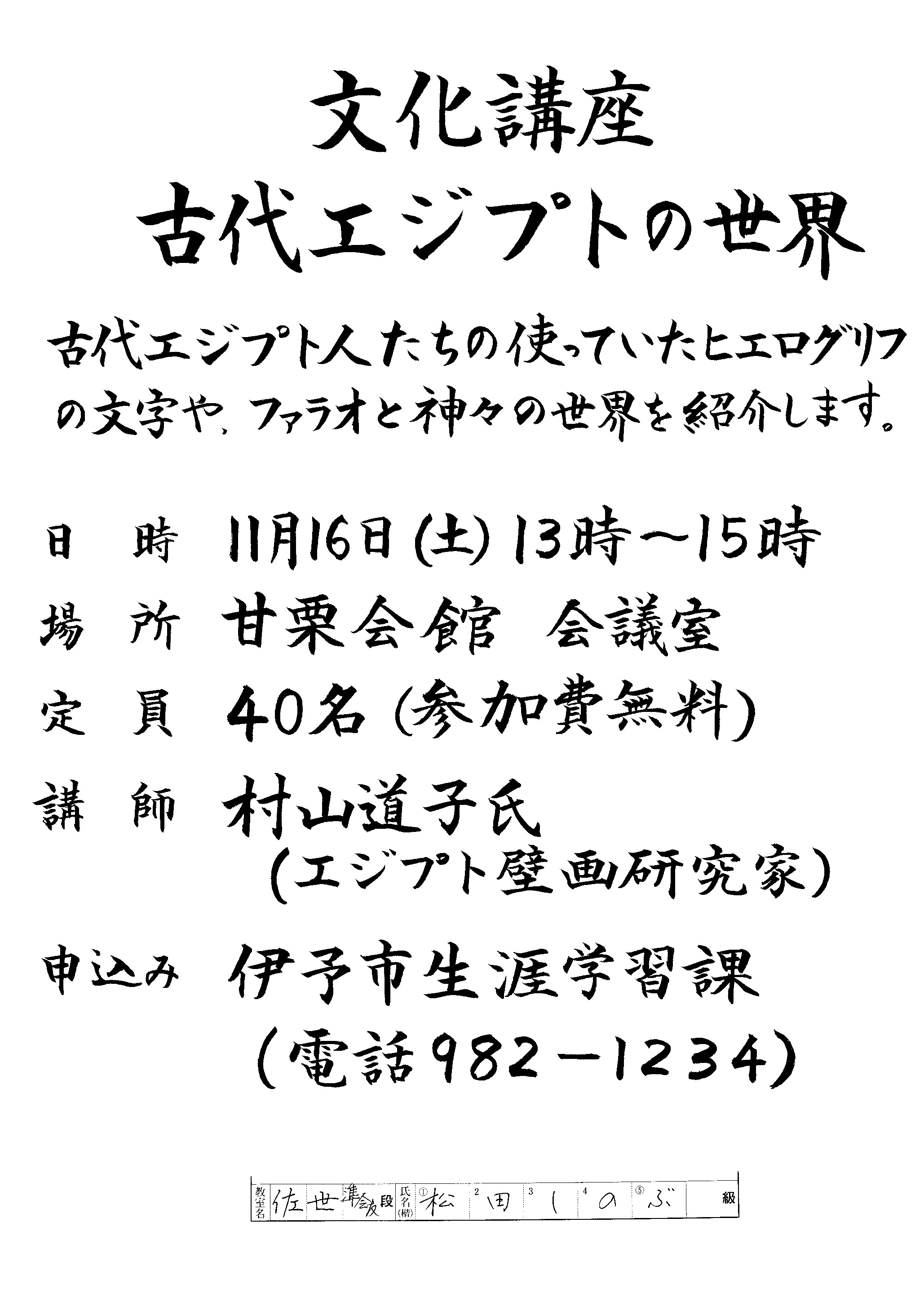 | 佐世 | 松田 しのぶ | 書学 | 高橋 百合子 | かに | 上村 恵子 | |||